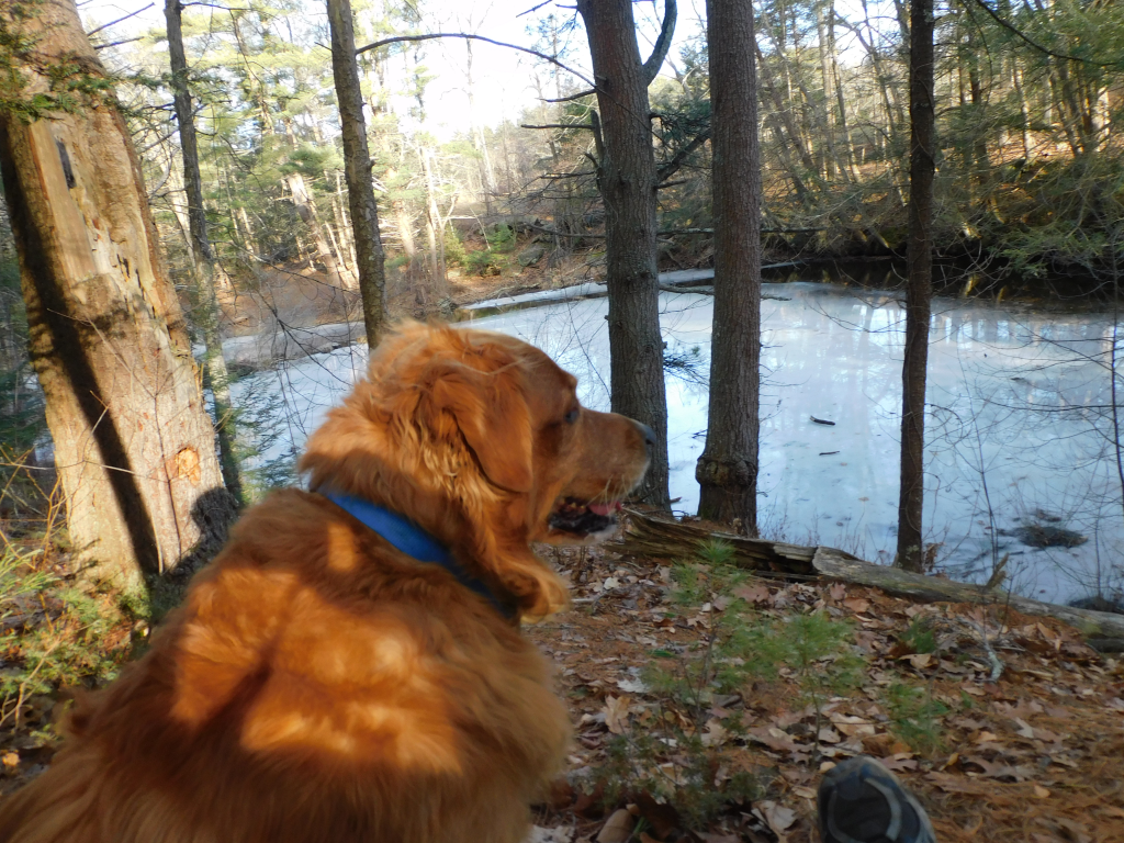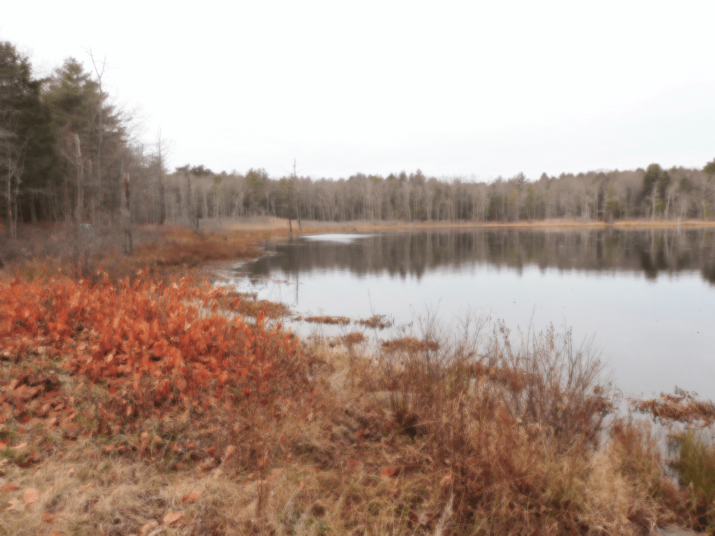 Leaving from High street at what people call Five Corners in Hampton, going on Little River Road to Woodland Road, one will see a small picturesque pond on your left. It is small enough to pass by without looking at it. You will see a small parking area in front of the pond. When you park your car there, there is a sign that says Ice Pond trail. The only trail is about 50 yards long.